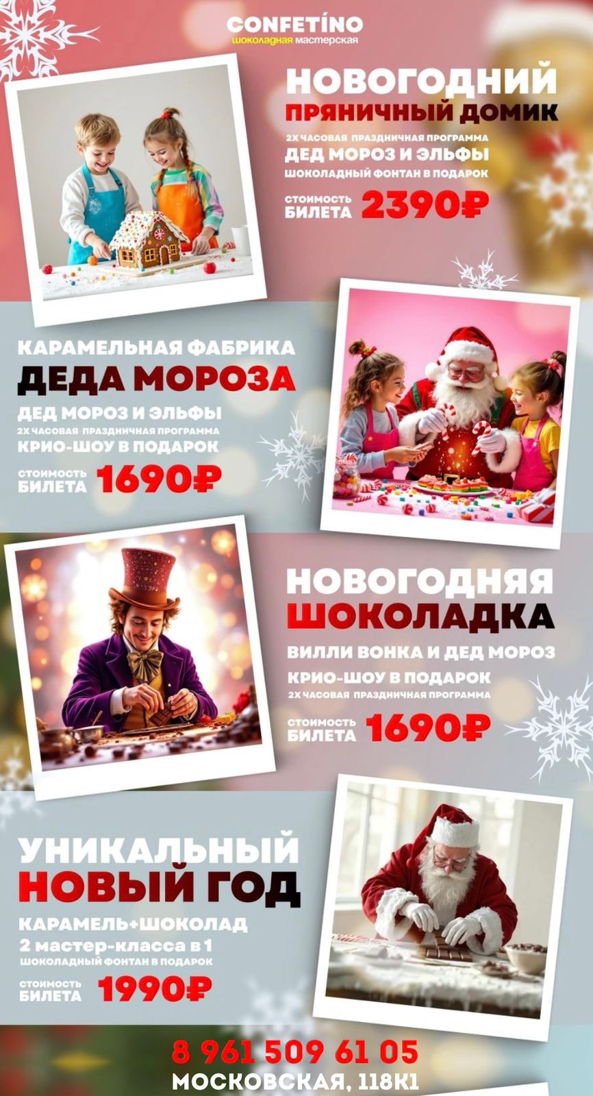 Конечно! Дети смогут сфотографироваться с настоящим оборудованием в цеху по производству шоколада, а также сделать веселые фото и видео с нашими ведущими и аниматорами.